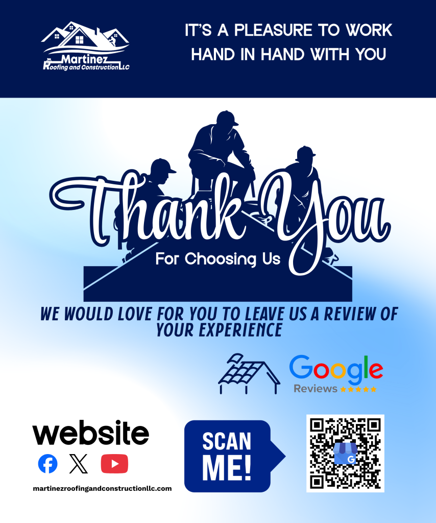 Omar and the team did an incredible job. They finished, took great care of the property and were very professional at all times. They made sure our new roof was installed perfectly and took steps to ensure there were no leaks. I highly recommend "MARTINEZ ROOFING AND CONSTRUCTION" I will use them again!